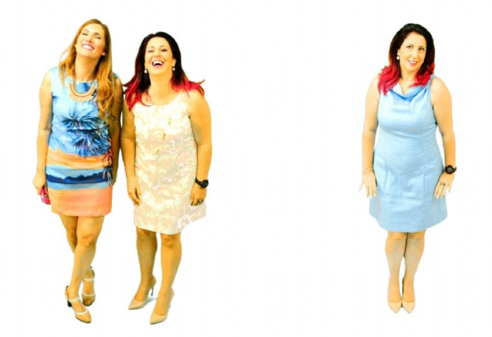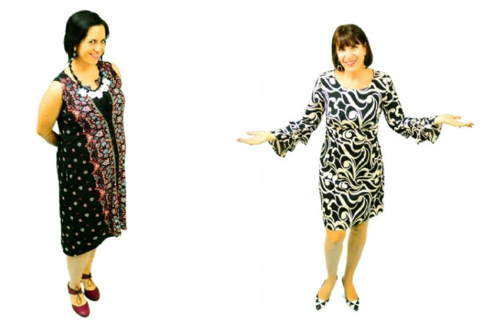 ולימור כץ בעלת בוטיק שייק מי מגבעת שמואל, מקסימה, עם כל התעוזה, בשמלה מצויירת בגזרה ישרה.